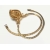 This unique and lovely mid century vintage necklace is 15" long (38.1 cm) and features a goldtone chain and 3D heart or heart shaped leaf with pave peridot colored green rhinestones. All the rhinestones are in place. It's in very good vintage condition, and has a fold over clasp. The focal piece measures 1 3/4" x 1 7/8" (4.5 x 4.8 cm).