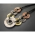 This brutalist style necklace by Kole Designs features mixed metal discs in silver tone, gold tone, and copper tone metal on four strands of black cord. It has a lobster clasp with an adjustable extender and can be worn at lengths from 16" to 19" (40.6 to 48.3 cm). Excellent condition. There is a Kole hangtag by the clasp. Kole Designs began making jewelry in 1981 in Brooklyn NY.