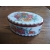 This vintage tin was designed by Daher and made in England. It's an oval tin measuring 6 1/8" x 4 1/4" x 2 5/8" (15.2 x 10.8 x 6.6 cm) and is in very good vintage condition with a few spots of rust (please see photos), but no dents. There are a few small rust spots on the lid, a bit of rusting along the edges, and a bit of rust along the bottom edge of the inside on one side. I've tried to show these areas in the photos, so please look at the photos on zoom for the best idea of condition. Overall, it's a lovely tin, good for display or use. The bottom is marked "Designed by Daher, Long Island NY, 11101, Container Made in England".