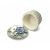 Vintage Flower Basket Trinket Box Round Resin Floral Keepsake Box with Lid Green Basketweave Woven Design Blue White Lavender Daisies