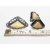 This beautiful vintage 1989 Avon brooch and earrings set includes an Art Deco style fan-shaped brooch and surgical steel post earrings for pierced ears. The pieces have a silver tone metal filigree design with marcasite accents, cream swirl enamel, and black enamel. The brooch measures 1 7/8" x 1 3/8" (4.8 x 3.5 cm) and the earrings are 1 1/4" x 1" (3.1 x 2.5 cm), and the set is in excellent vintage condition.
