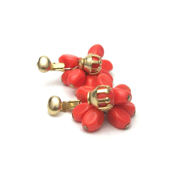 Vintage Orange Bead Cluster Clip on Earrings Kinetic Jewelry