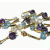 This vintage gold chain necklace features bar shaped gold tone links and open purple, blue and clear crystal beads. The chain has a spring ring clasp and is 34" long, and can be worn single or double strand. It's in excellent vintage condition.