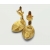 These vintage Trifari clip on earrings are gold tone metal with deep navy or midnight blue enamel. The Trifari signature is on both the back of the earrings and the back of the clips. The clips work well and fit comfortably. The earrings measure 7/8" x 5/8" (2.2 x 1.6 cm). They're in excellent vintage condition.