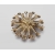 This vintage mid century brooch or lapel pin has a starburst design with a white and gold porcelain rose in the center a layer of rays of fleur de lis accents, and another layer of gold tone rays with pink rhinestones. It measures 1 7/8" in diameter (4.8 cm) and is in very good vintage condition with no chips, jut a bit of wear to the cream enamel on the fleur de lis. The pin mechanism works well.