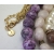 This signed Talbot chunky beaded triple strand necklace has gold tone chains, a large lobster clasp, and a 3" extender that allows the shortest strand to be worn at lengths from 22" to 25". The necklace has a beautiful array of beads, including the largest 5/8" diameter faux pearl beads, marbled purple acrylic beads, and rhinestone disc accent beads. The smaller pearl beads and marbley neutral beads are 3/8" in diameter. The necklace and all beads are in excellent condition. It's signed with a Talbot hangtag.