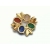 This beautiful vintage brooch is 14K yellow gold with natural gemstone scarab beetle cabochons. The pin closure is marked 14K, and the pin mechanism works well and holds securely. The brooch measures 1 3/16" x 1 3/16" and is in excellent vintage condition. The stones are carnelian, chalcedony, chrysoprase, and rose quartz. It weighs 6g.