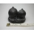 Vintage Baby Birds Owls Owlets Mother and Baby Owl Figurine by Wolf Original Sculptures Handmade in Canada Dark Black & White Molded Plaster