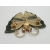 Vintage Carved Green Jade Colored Stone Butterfly Brooch Pendant with Coral Colored Eyes Gold Butterfly Lapel Pin