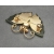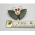 This vintage butterfly brooch, lapel pin, or pendant is gold tone metal with carved jade colored stone and coral colored eyes. The stone looks like real jade but may be another stone as it doesn't feel as cold to the touch as I would expect. The brooch has a bale on the back so could also be worn as a pendant. It measures 1 5/8" x 1 1/4" (4.2 x 3.1 cm) and is in very good vintage vintage condition. The pin mechanism works well.