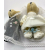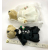 These vintage Ganz 2000 Bride and Groom Bears measure approximately 5 1/2" tall. They're in excellent vintage condition with no tears, stains or odors. The groom is complete with pants, jacket with pink boutonnière, white dickie with black bowtie, and booties.The bride is complete with wedding dress with bead and lace details, sheer veil, pink bouquet, white booties with blue bows, and lace garter with blue flower. All the clothes are removable except for the bride's veil and flower bouquet, which are fastened to her head and hand. Both bears have their Ganz 2000 Bride and Groom tags. Very cute pair!