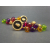 Vintage Liz Claiborne Crest Shield Drop Earrings with Colorful Bead Cluster Dangles Black Gold Purple Green Yellow Fuchsia Signed LCI