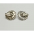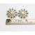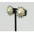 These mid century vintage clip one earrings have a floral design in silver tone metal, milk glass beads and blue and cream white enamel. They are in good vintage condition but do show some wear from age: one petal has some enamel loss, the glue has darkened with age around a few of the beads, and the clips have metal discoloration. They measure 1 1/8" in diameter, and the clips work well.