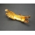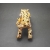 This stunning vintage leopard or panther shoulder brooch is gold tone metal with black enamel spots, green rhinestone eyes, and pave clear crystals. The brooch is curved to fit the shoulder and measures 4 1/8" long and 1 3/8" wide. All the crystals are in place and bright and beautiful, and all the enamel is intact. The only sign of age is some light metal discoloration on the underside of the hind legs (see photo of bottom), very minor and nothing visible when the piece is worn. The pin mechanism works well, and the brooch is unsigned but very well made and is a bit heavier due to its size, weighing about 3oz. This is a gorgeous statement piece!