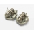 These beautiful vintage Coro clip on earrings feature a floral design in textured silver tone metal and lovely green Aurora Borealis crystals. The crystals are all in place. Aside from some metal wear on the clips (see photos) these earrings are in beautiful vintage condition. The clips work well and are signed Coro. The earrings measure 7/8" x 1" (2. x 2.4 cm).