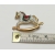 This vintage rocking horse is gold tone metal with clear pave rhinestones, red and green enamel, and a green rhinestone eye. All the rhinestones are in place, and the brooch is in excellent vintage condition. The pin mechanism works well. The back is signed ROMAN. It measures 1 7/8" x 1 3/8" (4.8 x 3.5 cm).
