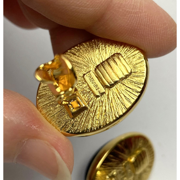 These vintage Trifari clip on earrings feature beautiful teal glass cabochons and gold tone metal settings. They measure 1 1/4" x 3/4" and are in excellent vintage condition. The pictures don't do these justice! The clips work well, and the backs are signed Trifari. To view the rest of my available items, click on STORE above.