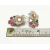 These vintage 1950s clip on earrings are white celluloid plastic flowers on gold tone metal with pink rhinestones. The backs are riveted. All the rhinestones are in place, and the clips work well. The earrings are in very good vintage conditon with only a tiny bit of metal wear from age. Beautiful!