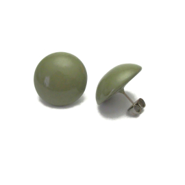 Vintage Olive Green Button Earrings Round Domed Army Green Post Earrings for Pierced Ears