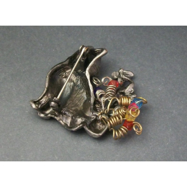Vintage Pewter Cat Brooch Cat with Different Color Eyes in Flower Garden with Bee Different Colored Eyes Kitty Silver Tone Pin